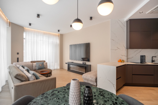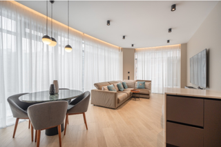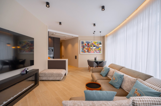 В квартире выполнен дизайнерский ремонт в современном стиле, продуманный до мелочей: