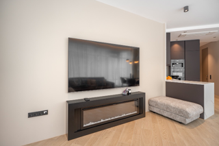 Электрокамин в гостиной для уютных семейных вечеров.