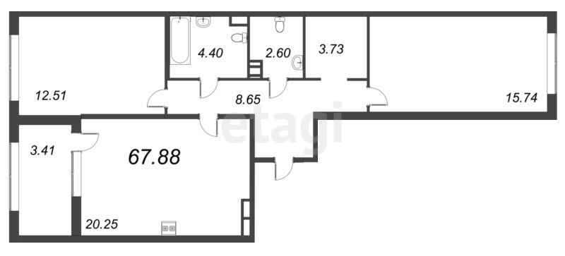 Mortgage from 92 130 руб./mth.3-room sq.67.87 m25/17 floor