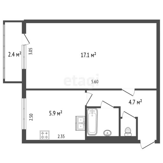 Комнаты: 17,1; кухня 5,9 кв. м.