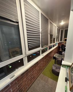 Изюминкой квартиры являются штульповые окна из натурального дерева с установленной зеркальной пленкой, обеспечивающую защиту стекла и скрывающую происходящее в квартире от посторонних глаз с улицы при включенном вечернем освещении.